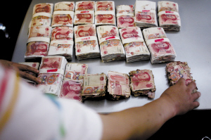 20捆百元現(xiàn)鈔成“紙磚”